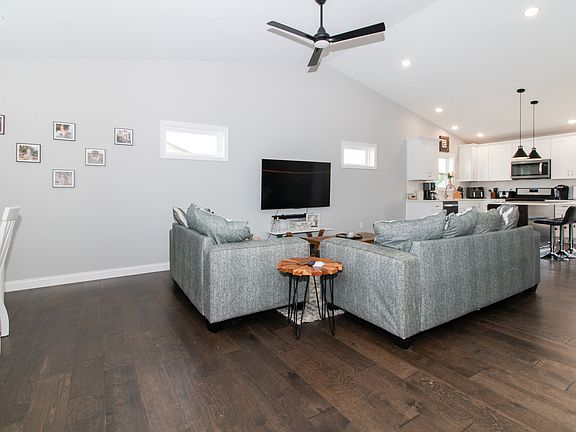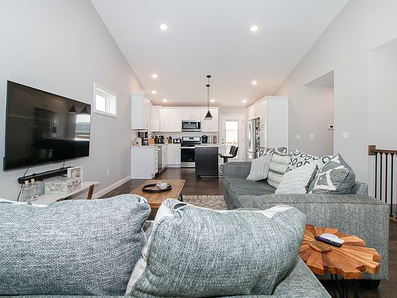 Welcome to this established, better than brand new, home in Fox Creek Village. This well-maintained, basically brand new property offers ample space in the wide-open great room, big bedrooms, and an expanded garage. This particular home features a daylight basement with many windows, bringing in loads of south-facing sunlight, and a massive elevated deck. The home has modern amenities such as a beautiful open staircase enhancing the living room's elegance, quartz countertops in the kitchen, a built-in drop zone coming in off the garage, and a spacious center kitchen island complementing the ample cabinet space. For additional convenience, the basement has been framed for the possibility of further finishing the area, with the space to add another bedroom and bathroom. Fox Creek Village residents enjoy the perks of a maintenance-free lifestyle and community amenities, including a clubhouse with a workout room, indoor pool, and a reservable party room for gatherings. The home features 2x6 exterior construction, energy-efficient LED disk lights, strategically placed USB port plugs, a WiFi-programmable thermostat, and a high-efficiency HVAC system. Experience the comfort of this lightly lived-in home, which still retains its modern, efficient building quality. This move-in ready home awaits its new owners! Seller has disclosed that there are multiple recording devices on the property.
