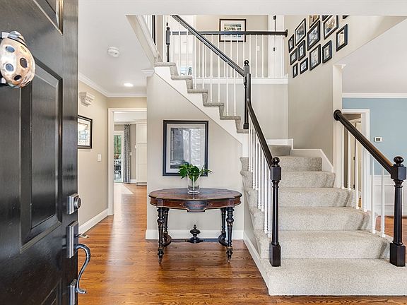 Ideally located on a picturesque tree-lined culdesac with sidewalks, this stunning 3 bedroom two and a half bath sunny home has quality updates throughout! The farmer's porch invites you in to enjoy gorgeous hardwood floors, gourmet kitchen with island open to breakfast & living room with fireplace & high ceilings. Slider opens to a fantastic deck and yard with a large shed. The spacious 2-car attached garage enters into the ultimate dropzone combo mudroom/laundry full of storage. Upstairs a luxurious primary bedroom with cathedral ceilings, shiplap, a stunning ensuite bath, a separate tub, tiled shower and custom walk-in closet. 2 additional bedrooms, another updated tiled generous full bath and a loft area perfect for an office or den complete the 2nd floor. The finished basement features a family room, gym, office and storage. Freshly painted interior, brand new 4 bedroom septic and top-rated schools. First showings at Open House Mar 23 from 2-4 Mar 24 from 12-2.