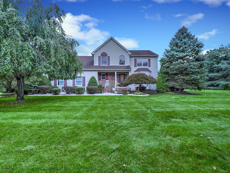 Beautiful 4 bedroom, 2.5 bath Colonial in Millbrook at Freehold! Home features a welcoming two story foyer, recessed lighting, bamboo wood flooring, and decorative molding in Dining and Formal Living Room. Kitchen has stylish & neutral cabinetry, stainless steel appliances, granite counters, ceramic tile backsplash, breakfast bar, and nook. Lovely wood burning fireplace in the Family Room, ideal for those chilly winter nights. Master Suite with walk in closet and full bath including his and her sinks, soak tub and shower stall. Sliders in the family room lead to outdoor deck overlooking patio and huge backyard with endless possibilities. Shed is great for additional storage PLUS a full 13 course unfinished basement with high ceilings, waiting for your personal touch!