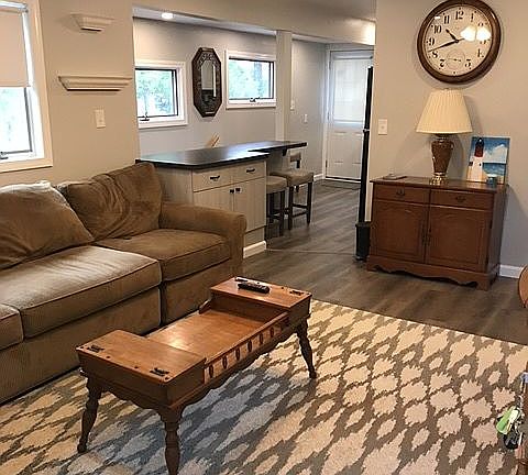 Turn key bungalow, just a short stroll from picturesque private Indian Heights Beach along Buttermilk Bay! House boasts an open concept living room and kitchen with spacious breakfast bar, custom cabinets and new appliances. Two generous bedrooms with ample closets and renovated bath with tile flooring complete the first floor living space. One bedroom has refinished hardwood floors, the remainder of the house has new vinyl plank flooring. Inside access to basement with washer/dryer hook up. Basement is blank canvas that can easily become additional living space.