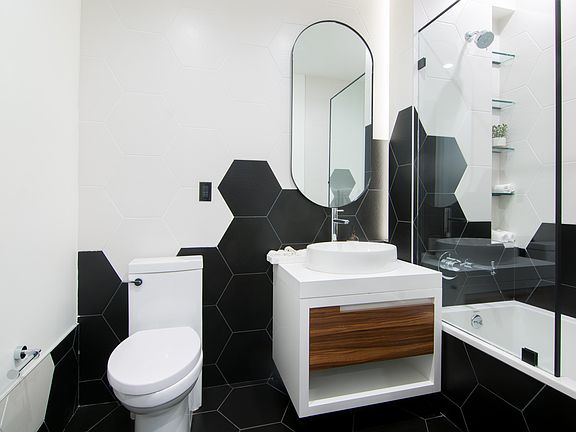 Floor-to-ceiling windowsStainless steel appliancesHardwood floorsBluetooth capabilities