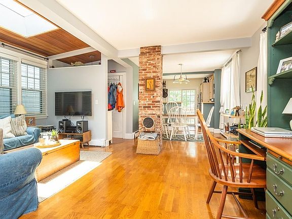 This Charlestown 1 bedroom is a true gem. With only two units in the the building, the sunny and spacious apartment has a its own entrance and deck, creating a sense of privacy. The kitchen/ dining living area is open and airy with its skylights and windows, making it a great space for entertaining. The bedroom is large and has a fireplace. The bathroom has a shower and soaking tub. There are hardwood floors throughout and lots of light. There is private and free laundry in the basement and extra storage. A half block from the Monument and bus, and a 10 minute walk to the Orange Line makes this home very convenient. Tenant's heat and electric utilities are attached to the landlord's bills, so the landlord will collect $200 a month to cover those expenses.
