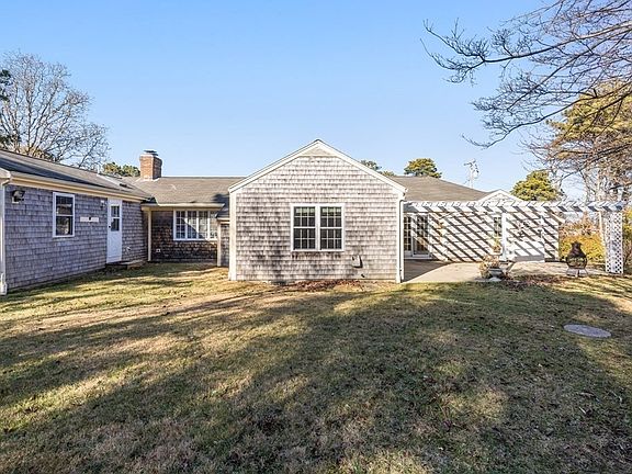 Discover a unique home in the delightful bayside town of Dennis. This single-floor residence features a primary suite with a backyard view and a cozy living room boasting a wood-burning fireplace. The coastal kitchen, adorned with white cabinetry, invites dining in. The family room opens to a backyard adorned with a pergola. Two more bedrooms and a full bathroom complement this charming home. With a 1-car garage for parking or storage, this property is perfect for year-round living or a summer getaway.