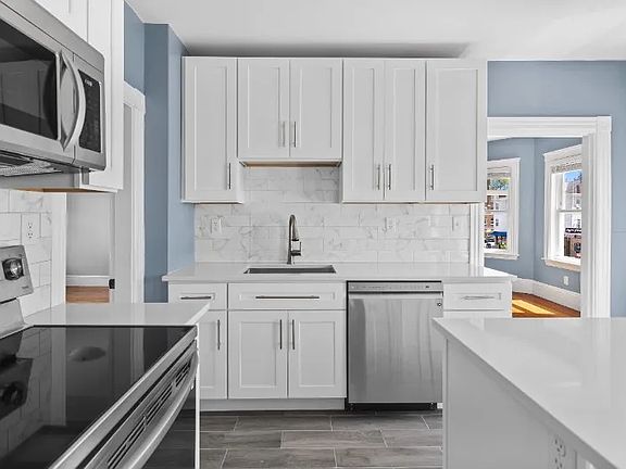 Newly Renovated, walk to bus route, East commute to T Station, Boston and surrounding cities. Newly renovated sunny spacious townhouse style duplex with white shaker cabinets, corian counter tops, gleaming hardwood floors, 2 modern bathrooms, Master bedroom with walk in closet and adjacent office space. Living room , dining room, washer and dryer in unit, central air, central heat, 3 season back deck, outdoor space for grill, unit will feel more like a home rather than an apartment. Family friendly neighborhood. Close to bus routes, train station and all major routes. 5 miles to Boston and close proximity assembly row, stations landing, shopping, restaurants, McKinnon's market and more. Please inquire about availability before submitting application.