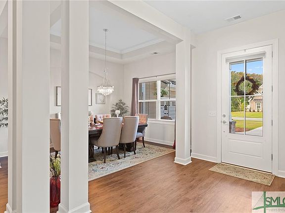 Enjoy VACATION-WORTHY views in this picturesque Craftsman home with backyard LAGOON! Located in the Savannah Quarters GOLF COMMUNITY, this home features upgrades galore! The open concept floorplan overlooking the waterfront is an entertainer's dream, yet it also offers plenty of privacy. The home features a large great room with built-in electric fireplace. The gourmet kitchen with custom cabinetry is both beautiful and functional, maximizing storage space even on the aisle ends. The owner's suite is located on the main level complete with dual vanity, his and her closets, and a gorgeous master bath. 3 additional bedrooms are located on the main floor; 2 w/ensuite bathrooms. Upstairs bonus room with full ensuite bath. Covered lanai with spa. Back paver patio. Easy maintenance with built in sprinkler system. Backyard fence w/3 entrance gates. Don't miss the opportunity to own this gorgeous WATERFRONT RETREAT!