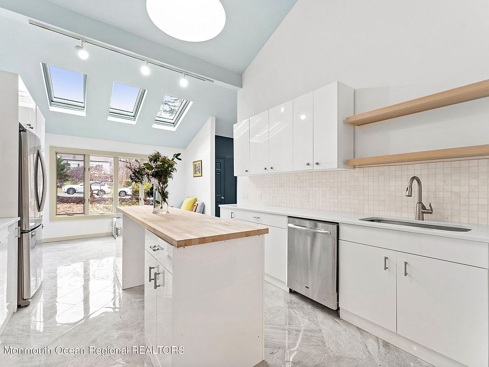 This completely renovated split level home offers 4 bedrooms, 3.5 bathrooms and over 2600 SF to enjoy. The updates include new roof, kitchen, siding, HVAC, patios, bathrooms and much more (refer to list of highlights). The layout is extensive & filled with natural sunlight. The main level features open concept with 13 ft vaulted ceilings and beautiful Skylights. Brand New sparkling white kitchen and a new updated powder room. Foyer leads right into the Living Room and Dining Room that have floor to ceilings windows with views of the wooded lot. Main bedroom with Ensuite. 2 more Full baths and 3 additional bedrooms, all a great size. Enjoy your private backyard with public sewer and water. Take advantage of Holmdel's top schools, shopping and commute friendly location.