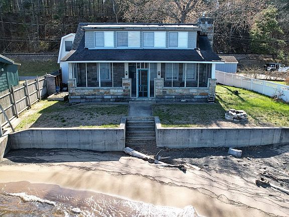 Enjoy the Panoramic Views of Lake Champlain and the Vermont Mountains in the Stunning 3 Season Adirondack Stone Cottage. This remarkable find is situated at the end of a sandy beach with 63' of lake frontage. Come relax and make memories that will last a lifetime. Recently updated kitchen, appliances, electrical and plumbing. The first floor offers 10 ft. ceilings throughout; kitchen, living room, screened in lakeside porch, 2 bedrooms and a full bathroom. Wake up every morning to the sunrise in the primary bedroom located upstairs with numerous windows, laundry area, closet and half bath. The living room has a stone fireplace that comfortably heats the entire cottage. Ceiling fans have infrared heating units for added individualized heat for each room. There is also a 10 x 24 garage with loft storage that could be used for a small car, bikes, boats, etc. Stunning views... Come and take a look today!
