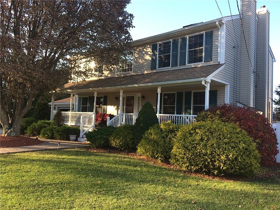 Pristine contemporary colonial in desirable Smithfield featuring stunning 2 story foyer, gleaming hardwoods, 3 beds w/ master suite and walk-in closet, 3 full baths, new appliances, central air, underground sprinklers, two tier rear deck and front porch w/ trex decking, custom paver patio, garage, additional living area in partially finished basement with new carpeting, storage and cedar closet! Located on corner lot with private park-like grounds and lush perennials! Nothing to do but move in!