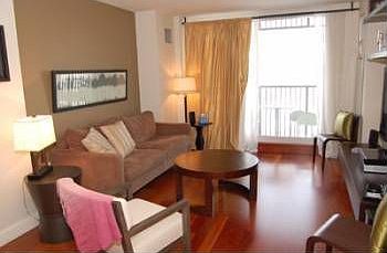 FORMER MODEL UNIT with balcony! Beautiful Wood floors. Large master bed with walk-in closet and en suite bath. Kitchen with stainless appliances and granite counters. TV MOUNTS INSTALLED. Price includes one valet parking Building amenities include 24/7 concierge and valet parking,on-site property management,gym with lap pool and hot tub,business center,movie room,gathering and event room,shuttle service,laundry dryclean pick up and drop off,on site market with ATM. Steps to Mall shops and T.