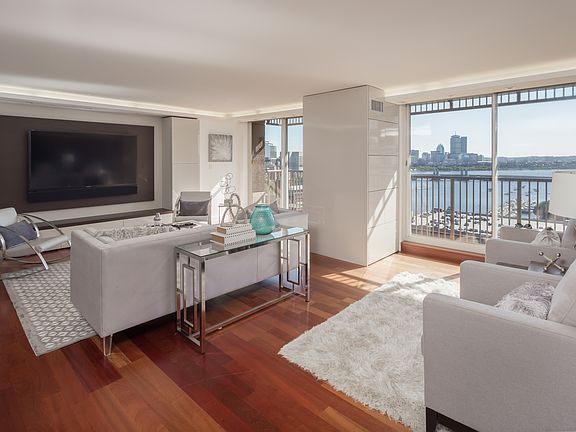 Enjoy breathtaking panoramic views of the Charles River and Boston skyline from this 22nd floor 3 bed, 3 bath corner home. Featuring an enormous, open living area outfitted with a custom Italian kitchen and floor-to-ceiling windows. The bathrooms are beautifully finished with marble tile, including the en-suite, spa-like master bath. This residence is complete with in-unit laundry, custom closets, 2 valet garage parking spaces, and a balcony offering one of the best views of Boston. Full-service amenities at the Regatta Residences include 24-hour concierge, heated pool and spa, fitness center, club room, and movie theater. Easy access to MIT, MGH, The Cambridgeside Galleria Mall, major highways and public transportation. The property sits along the 8.5 acre North Point Park. Free shuttle to Kendall Sq., MIT, North Station.