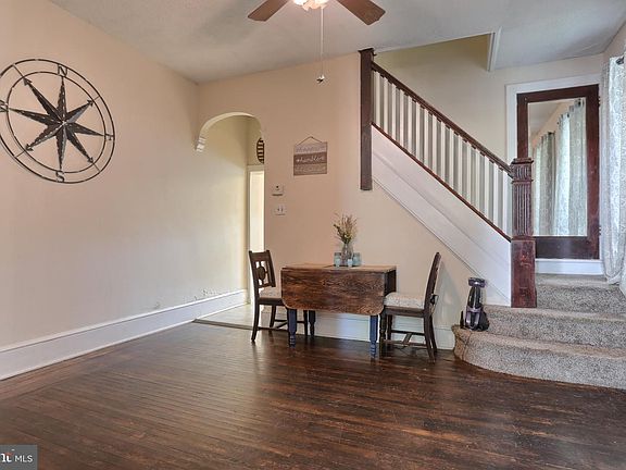 Move in ready Pottsville Single with nice upgrades which include kitchen and bathroom. As you enter the home you will find refinished original hardwood floors on the main level. As you come into the living room and as you walk through you will find the beautiful original French doors leading into the dining room . The kitchen was updated in the last 4 years and adds a touch of modern to the character of the home that still has the gorgeous original woodworking. Many newer replacement windows. In addition to the 2 good sized bedrooms on the second floor, there is a small bedroom at the back of the house. It could be used as a computer room, large walk in closet, work out room or even a nursery. There is also an exit door to a second story rear porch that is accessed from this rear room. Backyard has a nice sized shed. There is a lot next door to the left of the house that is owned by city of Pottsville that can be rented for $1 per year. Current owner uses for off street parking and additional yard space. Virtual tour available.