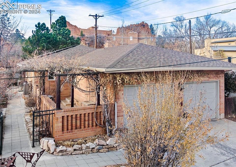 Located on private lot on the Westside, this brick rancher is open, bright, solid, energy- efficient, and rich with character. View Pikes P eak and Cheyenne Mountain from the newer Anderson windows on the main level. Enjoy the aesthetics of Red rock formations on adjoining lots. NEW STAINLESS APPLIANCES have been installed in the property since the photos have been taken. Now vacant, and freshly painted on the main level, the space feels like a canvas to create nurturing and functional spaces. Solar panels can produce an additional 500 kWh each year. The bathroom on the main level has a new tub surround and shower. The class 4 hail resistant shingles are less than 7 years old. Parking is convenient with an attached east facing two car garage with ample room for vehicles, workbench, and storage. There is a 20-amp outlet suited for charging an electric vehicle. The exterior of the home is solid brick, and the soffit is composed of permanently painted aluminum, contributing to the low maintenance aspect of the home. The main floor has two new programmable thermostats. The basement has painted concrete floors, a large gathering space, a bedroom, a 3/4 bathroom with laundry hook up, and storage room. Outdoor entertaining is delightful on the southwest facing patios with VIEWS. Two steel pergolas and an abundance of drought tolerant vines (including a spectacular mature wisteria), shrubbery, ornamental grasses, and ground cover add texture and the serenity to the garden.