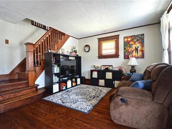 Welcome home! Charming, 2 story brick single with covered front porch and beautiful stained glass features in living room windows. The huge living room has hardwood floors and french doors that open to dining room. The kitchen has been beautifully updated with cherry cabinets, new tile backsplash, granite countertops, slate floors and breakfast bar opening to dining room. Gorgeous original woodwork throughout and unique staircase with access from living and dining rooms. On the second floor are 3 spacious bedrooms and full bath. The bathroom has been updated with cherry vanity and tile wainscoting. Lovely, large, level fenced yard with deck just off kitchen for summer entertainment. 2 car detached garage. Full basement with outside entrance, economical gas heat. It's time to fall in love with your new home! HIGHEST and BEST BY SATURDAY 5 PM!