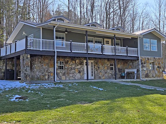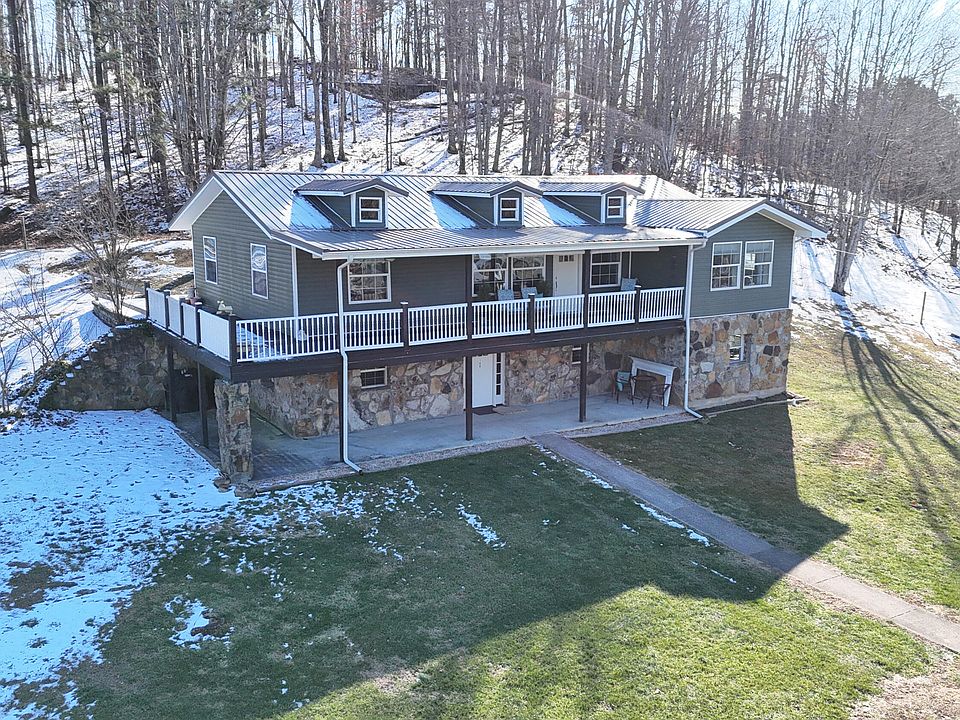This beautiful two story home has room for a family or room to spread out. The main floor has a spacious living area, dining room, bedroom, full bathroom and a large kitchen with concrete counter tops, stainless steel appliances and stainless steel vent hood, white cabinets and lots of light in this Chef's kitchen, there is also a 6' x 4' pantry with barn door entry. The second floor has a beautiful light filled family room opening up to the second floor covered rap around deck on the front and a 59' x 10' concrete patio on the back, this floor also has two secondary bedrooms, a large laundry room/mud room, a full bath and a lovely large primary suite, with a sitting area great for reading or relaxing, a walk-in closet with barn door entry and a private bathroom with a lovely wall paper, beautiful tile encased soaker tub and sleek vanity and counter top. There is an easement to the property behind this property along the side property line. This property is about 6 miles E of Natural Stone Arch Park & 9 miles W of Cumberland Falls - the splendor of nature surrounds you!