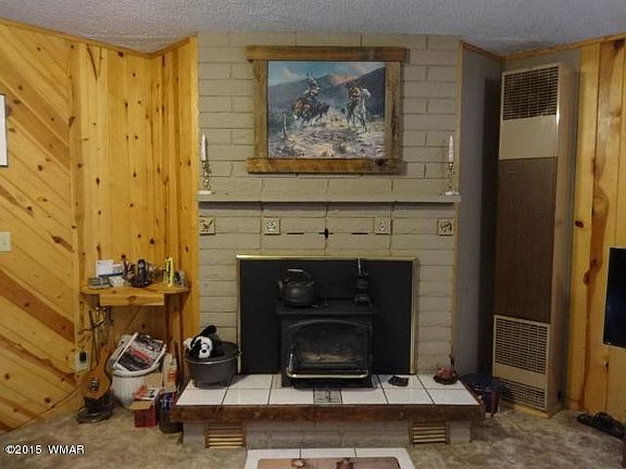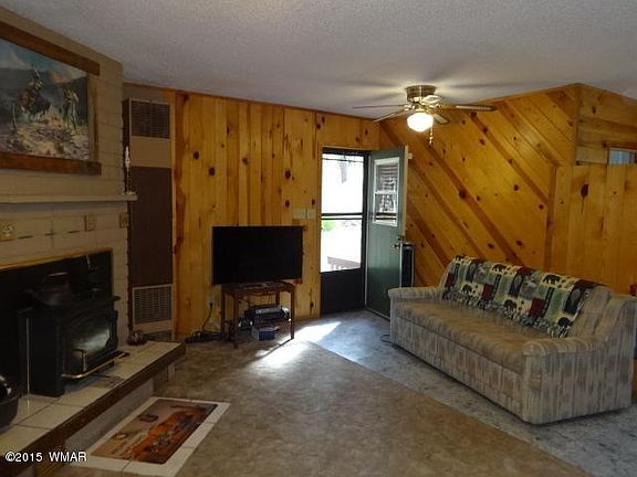 Cute cabin on 1.5 acres. Tongue in Groove knotty pine paneling, huge deck overlooking sloping 1.5 treed acres. Metal Roof. Furnished. Wood stove insert in fireplace, gas wall furnace, baseboard heaters all provide cozy warmth. Close to National Forest, Luna Lake. Perfect getaway cabin or ready for full time resident.