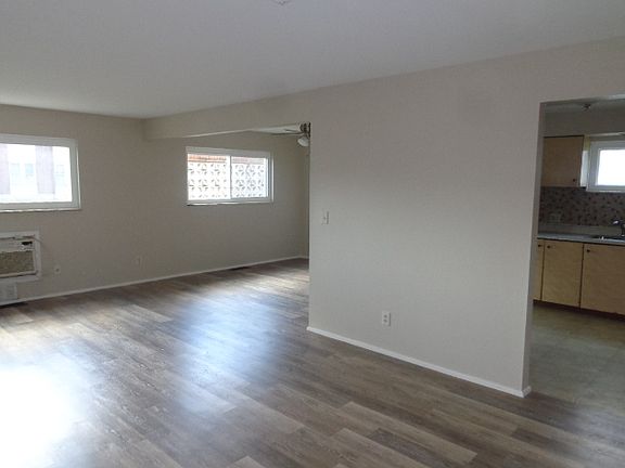Living room Dining Area Kitchen with stove and refrigerator 2 Bedrooms 1 Bathroom Gas heat and Wall a/c units Coin laundry on site Sewer and trash included with rent.