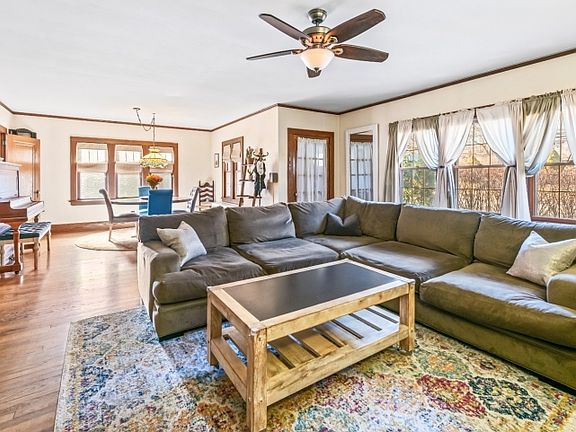 Beautiful Bright & Sunny Brick Tudor Cape Cod with Custom Craftsman interior. Chefs Galley Kitchen, Timeless Hardwood Floors, Wood Panel Doors, & Trim. French Door, Open Floor plan. Living Room & Dining room highlighted with a Brick Fireplace Flanked with Custom Arched bookshelves. Details galore through out this home. Come see and make it your own. City water, sewer & natural gas. Cats in the home, please take off shoes and wear masks. Send in your best offer!