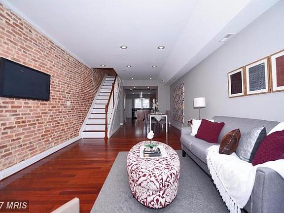 Gorgeous open floor plan w/exposed brick*Hg LR w/cherry flrs open to gourmet kit.w/granite counters. kit island w/gas range, commercial vent, s/s appls, wd fls & cherry cab*Wd flrs on entire upper level*MBR w/w/i CA closet & ceiling fan*Spac. 2nd BR open to rear deck*Amazing BA w/whirlpool tub, sep cer shwr for 2& dbl soapstone vanities* Fin basement w/new w/w carpet*Home just painted*Paved Patio!