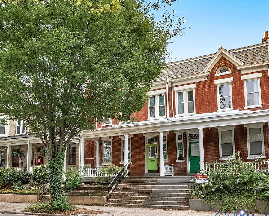 Wonderful opportunity to own a historic 1908 Fan row house with modern appeal. The home offers 3 bedrooms and 3 full bathrooms situated in 1792 sf. Large formal living and dinings rooms with pocket doors, built-ins, beautiful fireplaces with ornate mantles, mirrors and tile work. Kitchen has been updated with custom cabinets, stainless appliances (new dishwasher), Granite counters, tile floor and recessed lighting. Butlers bar with wine cooler, built-in bench seat and glass front cabinet in the wide entrance hall. Full bathroom with slate floor and cast iron tub complete the first floor. Upstairs has 3 bedrooms, and two full bathrooms, laundry closet with storage and a screen porch off the back bedroom. The primary bathroom is spacious with a double vanity and large walk-in shower with a ball and claw tub. Backyard is fenced and landscaped and there is a covered deck and brick patio, in addition to a small garage, accessible from the wide alley. Wood floors, stained glass windows, recessed lighting, tall ceilings, decorative fireplaces, and large windows throughout. The home has excellent bones and a great floor plan. There is a new 3 year home warranty plan that conveys. Great location, walk to tons of restaurants and shops (Bacchus is at the end of the block). Information is deemed reliable, but not guaranteed. Measurements are approximate. Photos virtually staged.