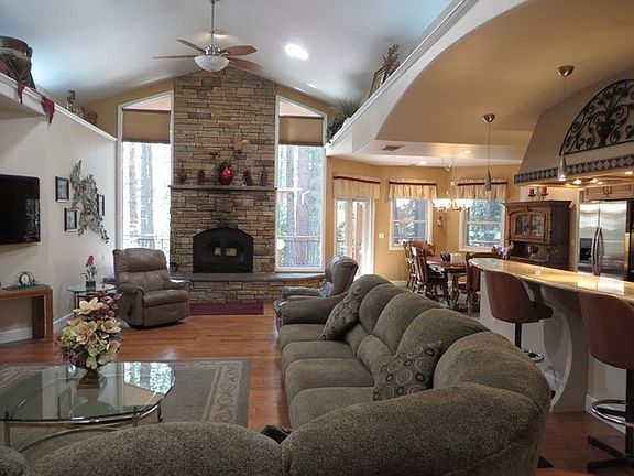 This beautiful custom built home nestled in the pines is calling your name. From the minute you walk into the front door, it feels like home. Located in a great Plumas Pines neighborhood, with Madora Creek running through the back yard and a peak of the Feather river in the distance. The home has large open floor plan with lots of windows, bringing the outside in. The beautiful floor to ceiling fireplace with vertical windows can be seen from every vantage point. The galley kitchen has granite counters, stainless steel sink and upgraded stainless steel appliances, including a Viking gas range, KitchenAid fridge, dish washer and trash compactor. The large master bedroom has access to the back deck, a large walk-in closet and master bath has a soaking tub and separate tile shower. This home also features a large deck, hardwood floors, Hunter Douglas blinds, Xtrordinair fireplace, tube sky lights, oversized garage, security system prewire and much more. Don???t wait???.call today for your private showing!