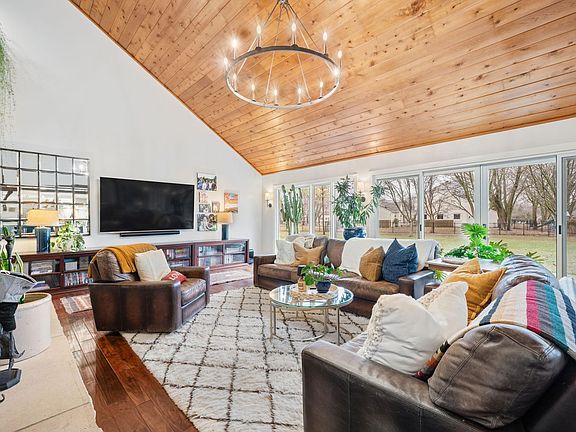 Welcome to 10 N Sandpiper, nestled in the sought-after Shadybrook Farms neighborhood of Wichita, Kansas. This stunning 6-bedroom, 4.5-bathroom home sits on nearly an acre lot, featuring a circular driveway, mature trees, and a fully fenced backyard. Step into the living room, where you'll find a striking two-story vaulted ceiling with a wood-burning fireplace framed by limestone from floor to ceiling. The tongue-and-groove wood ceiling, hardwood floors, and large windows offer sweeping views of the backyard, creating an inviting space for relaxation and entertainment. There's also ample space for a dining area, perfect for hosting guests. The living room flows seamlessly into the open kitchen, complete with a vaulted ceiling and a massive skylight that bathes the room in natural light. The kitchen boasts a large island with Terrazzo-style stone countertops, an undermount sink, instant hot water, built-in buffet, double ovens, a Sub-Zero refrigerator, GE microwave, Bosch dishwasher with a third rack, a five-burner JennAir gas cooktop, custom cabinetry with pull-out drawers, a built-in spice cabinet, hardwood floors, a walk-in pantry, surround sound, central vacuum, a wet bar with a wine fridge, an eating nook, a patio door, and large windows. Adjacent to the kitchen is a main-floor laundry room with a built-in drop zone and wash sink. The formal dining room, currently used as an office, features hardwood floors, plantation shutters, a bay window overlooking the front yard, built-in cabinets with lighting and glass shelves. The luxurious master suite on the main level includes hardwood floors, a private patio, and a stunning ensuite bathroom. This recently renovated bathroom offers separate vanities with quartz countertops, a 6-foot soaker tub, a private water closet, a zero-entry tile shower with multiple showerheads, a chandelier, and an impressive 26-foot-long walk-in closet. The main level also features an additional bedroom with an ensuite bathroom and a convenient half bath. Upstairs, are two spacious bedrooms connected by an updated Jack-and-Jill bathroom with double vanities, a tile shower, and a private water closet. Both bedrooms feature vaulted ceilings, plantation shutters, walk-in closets, and one even includes a secret loft, perfect for a playroom or reading nook. A cozy reading space just outside the bedrooms overlooks the living room below. The fully finished basement offers even more space for living and entertaining, with two large bedrooms, a full bathroom, a game room with a wood-burning fireplace, a theater room, and a 30x15 exercise room. There's also a 30x15 storage room. You will love the privacy of the massive backyard, complete with mature trees, a huge patio area, and an outdoor stone fireplace with both wood-burning and gas start options. It's the perfect space for outdoor gatherings and relaxation. Additionally, the home features a large 3-car side-load garage. Additional upgrades include a new 50-year impact-resistant roof (2023), new 6-inch gutters with gutter helmets, new exterior paint, and three-zone HVAC system (two geothermal, one heat pump). Other highlights are the engineered hardwood floors on the main level, new sliding doors in the living room, central vacuum, Sonos sound system on the main level, wiring for a hot tub outside the primary suite, a cedar closet, plantation shutters, soffit outlets for Christmas lights, a sprinkler system, and irrigation well. Located in the highly-rated Andover school district (Meadowlark and Andover Central) with Wichita taxes and no special assessments, this is your opportunity to OWN the home you love.