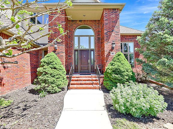 This striking 5-bedroom, 4-bath multi-story brick residence sits on more than a half-acre of lushly landscaped grounds in the enviable Shadybrook Farm neighborhood! Enter the 3,973-sq ft interior showcasing soaring ceilings, elegant trim, neutral tones, plush carpet, hardwood flooring, and tall windows that spill brilliant light throughout. Your generously proportioned living and dining rooms encourage vibrant gatherings, while the family corner lends itself to more intimate chats around its crackling hearth. Ideal for entertaining, the open kitchen features handsome cabinetry, stainless steel appliances, and gleaming granite countertops that extend to the multi-seater chef’s island with its new induction cooktop. Start the day in the cheerful breakfast nook, where custom shelves display your cherished keepsakes and glass sliders lead to an expansive deck overlooking the sprawling park-like backyard dotted with peach, cherry, and pear trees. Escape after a long day to the well-sized bedrooms where ample storage keeps you organized. Surpassing the rest, the primary suite features a tray ceiling, a large walk-in closet, and a stunning ensuite with dual vanities, heated floors, a shower stall, and a deep, window-side soaking tub. The lower level with adjacent basement creates a versatile canvas for your needs, with a layout suited for a recreational area, a home office, or overnight company. Notables include newer insulated siding and windows, built-in blinds, multiple laundry areas with gas and electric hookups, two hot water heaters, zoned HVAC, a 92’ irrigation well, and garage space for five vehicles. With shopping, dining and entertainment just a short distance away, why wait? Come for a tour before it slips away!