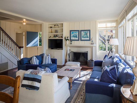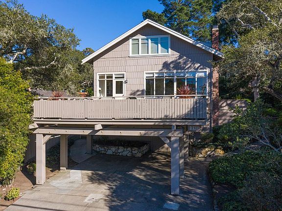 Situated on an oversized lot with spacious deck and stone patio with filtered ocean views, this four bedroom, three bath home exudes the beach cottage charm for which Carmel-by-the-Sea is known. Located on a very quiet stretch of Casanova, between Ocean and 4th Avenues, this vintage three story family home boasts a close proximity to both downtown and the beach. The home features 2,080 square feet of living space on a 5,663 square foot lot, an open floorplan, living room fireplace, custom built-in cabinets/shelves/window seats, shiplap and board and batten walls, a mixture of hardwood and carpeted floors, a large driveway and carport, single car garage and laundry room, and beautiful ocean views from some bedrooms. Whether used as a primary residence or a vacation home with a strong rental history, this light and bright property is move-in ready or ready for an owner looking to update/remodel. Either way, this combination of size, space, location, and charm is a rare opportunity!