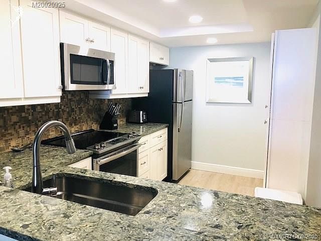 Beautifully remodeled 2/2 & fully equipped & furnished with wide water views of the Intracoastal/Indian River. New Vinyl flooring that looks like wood planks throughout. New Kitchen & Master Bathroom, with closet cabinets in master bedroom closet. Laundry room with full size washer & dryer. Available Sept 15, 2020 for annual rental at $2800 per month. Available for seasonal rental also at $4,500 per month plus 11.5% tax. One under building parking plus extra storage. Community Pool. No pets allowed.