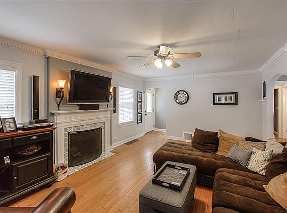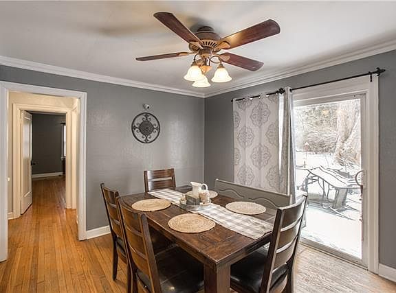 Charming Cap Cod home, lots of updates! Lots of hardwoods flooring! Living Rm with cozy fireplace, ceiling fan HW flooring. Located off the liv.rm is a nice sun porch with ceiling fan. Beautiful kitchen; stainless steel appliances, tile flooring, tiled back splash, hardwood flooring and french doors that walk out to a patio that overlooks a very large yard. Master and 2nd bedroom located on the main level. Updated full bath on this level.The 2nd level offers 2 bedrooms and a full bath. A double detached garage. Home offers a very large lot that is approximately 3/4 of an acre