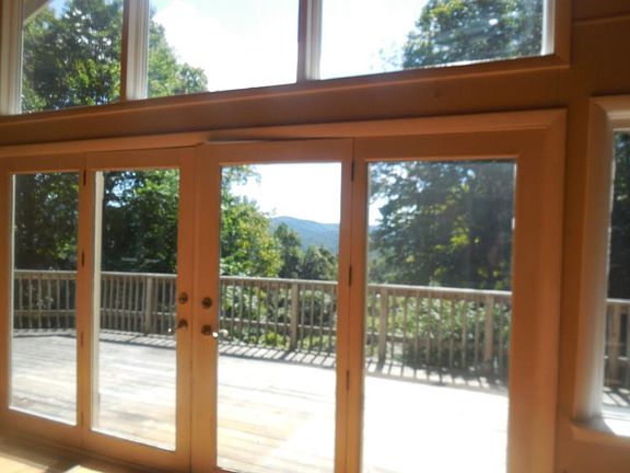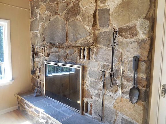 Panoramic views from this home through fabulous floor to ceiling windows, taking in the valley below. Open floor plan with stately fireplace. Private country setting. Five acres of land with newer barn on property.