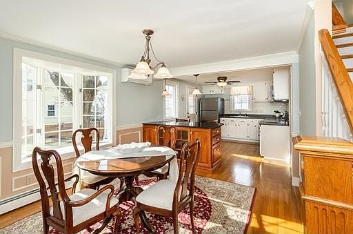 Step into this picture perfect Cape and you'll have found your new dream home. This home has been maintained & renovated so that there's nothing to do but enjoy it. The remodeled kitchen (2018) offers new countertops, a granite center island, stainless steel appliances, oak cabinets, subway tile backsplash and radiant hardwood floors. New sheet rock, paint, crown molding and hdwd floors grace the dining room and the freshly painted living room boasts hdwd floors, fireplace & crown molding. Nothing but the highest quality materials & fixtures were used to completely renovate the gorgeous tiled 1st floor full bath. The bedroom on the 1st floor could also make great home office. The large screen porch with pine ceiling and maintenance free deck were added in 2006 to enjoy the lovely fenced back yard. The 2nd floor has two large bedrooms, one w/cathedral ceilings, & a full bath/laundry room. Hdwd flrs throughout, replacement windows, new roof (2015), wtr htr (2017), boiler (2003).