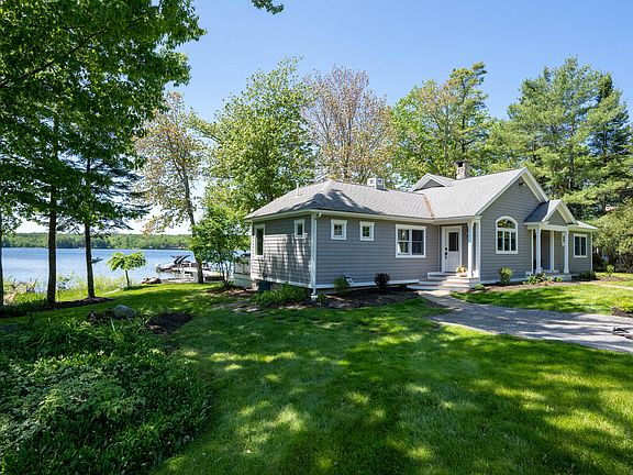 Located on the basin at Sebago Lake, this waterfront family compound offers a tranquil and picturesque setting. The south-facing dock and patio with a fire pit provide the perfect setup for entertaining friends and family on the shore. The main house offers a fantastic gathering open concept gathering spot. The kitchen with granite countertops, high end appliances and island opens to a dining area with great room with cathedral ceilings, stone fireplace, beautiful built-ins and large windows allow for an abundance of natural light and panoramic views of the lake. It's an inviting space for relaxation and socializing. The primary suite is a luxurious retreat within the main house. The water views provide a serene atmosphere with access to the deck. The ensuite incudes a jacuzzi tub, custom tile shower, two vanities, and a walk-in closet. Two additional bedrooms and full bath are located in a separate wing of the house, providing privacy and convenience. Above the detached three-car garage, there is a one-bedroom accessory dwelling. This space features an open concept full kitchen and living room with water views, providing a cozy and scenic environment. Additionally, there is an outbuilding on the property that serves multiple purposes. It can be used as a space for overnight guests, a workout area, or even a home-based business. The half bath adds versatility to the building. Overall, this waterfront family compound offers a blend of comfort, luxury and natural beauty. It's an ideal retreat where you can create lasting memories with loved ones and enjoy the serenity of lakeside living.