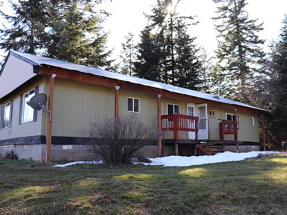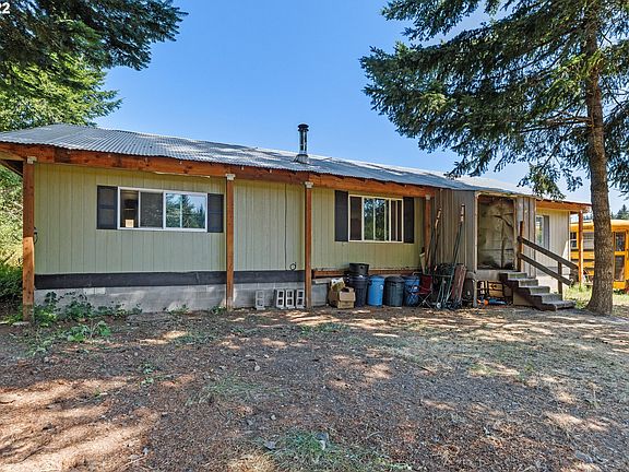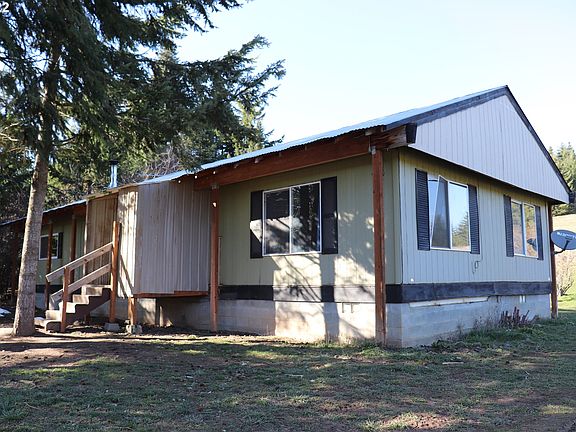 Living in the Country! A generous 5 acres of usable land!! 1973 VERY MOTIVATED SELLER. Manufactured 2-bedroom, 2 bath home, hickory cabinets, newer counter tops. Covered roof structure with metal roofing. 36 x 72 barn, tack room, metal roof, hay storage, power and water. Wood shed, storage shed, fenced for horses. 5 acres w/gentle slope, open pasture, skirted w/ tall pines and firs. Solid WELL! Septic pumped in 2020.Cash ONLY. No seller carry