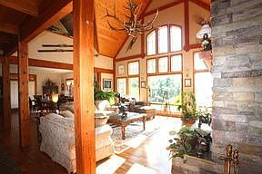 Spectacular home & shop with water views & located in a waterfront community that offers dock & sandy beaches! Stunning design & superb finishes; wood floors, beam accents and extensive use of stone, slate & granite. 4 bedrooms, 3 bathrooms, spacious open rooms for entertaining and landscaped to perfection with a water feature. Terrific paved access close town. Adjacent water view parcel available. $899,900 Call Charesse #21102449
