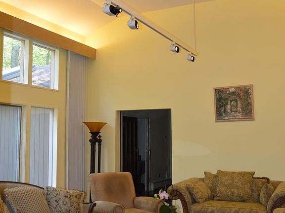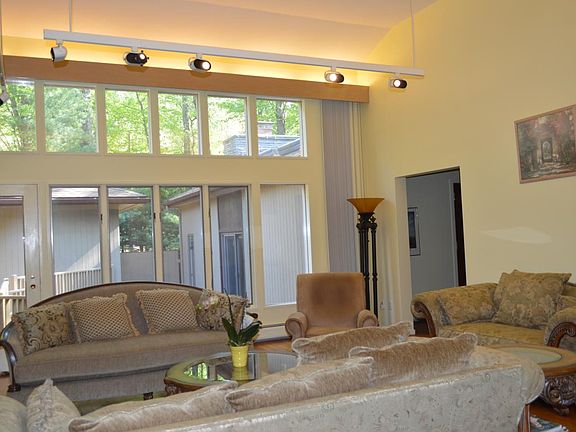 If you care about privacy, consider this spectacular, modern, contemporary 5 bedroom, 3.5 bath ranch style house that offers easy one level comfort, built on a grand scale, and surrounded by towering trees on a 1.72 acre of a land. You will love the walls of windows, quality touches, generous deck, 3 car garage. A delight to look and a pleasure to live in; master bedroom has its own view of Koi pond and library has high open beams. Additional 2358 SQFT finished space in the basement with full bath and one extra bedroom