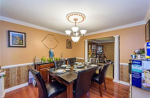 Sprawling 4 bedroom and 2.5 bathroom colonial style home. Enter into a foyer/center hallway. Formal living and dining room with crown moldings. Eat-in-kitchen with a center island/breakfast bar. Family room with built-in shelving, fireplace and french doors to back yard. The first floor also features a powder room with laundry hook up. The second floor has 4 bedrooms and 2.5 bathrooms. The master bedroom offers a walk-in closet and attached master bathroom with a stall shower. Full basement with a recreation room and another extra room. Fenced-in back yard features a paved patio, hot tub, shed. Attached 2 car garage on a double wide driveway. A must see!