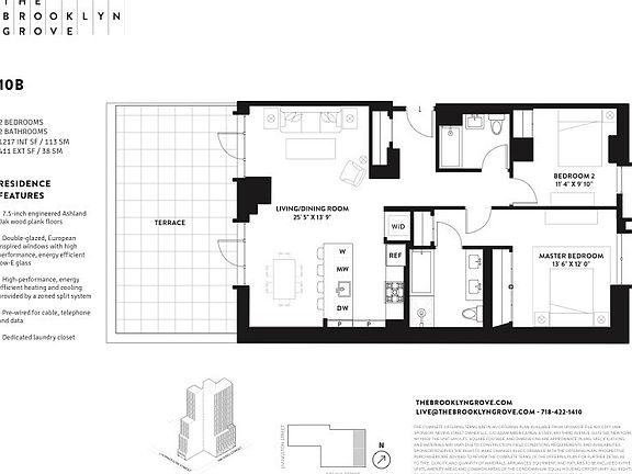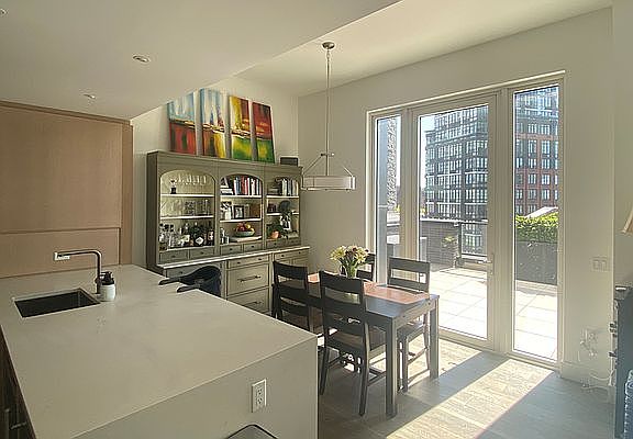 Two bedroom in new, luxury building with 400+ sq ft private terrace. Washer and Dryer in unit. Building has gym, roof with BBQs and couches, private pool, and common room with TVs & pool table. Apartment is less than one block to major subways (2/3/4/5) and less than 2 blocks to (B,Q,R,D,N,A,C). We will leave the terrace furnished (plants and new furniture) and are able to leave the large cabinet system in the dining room. Also will give you access to our storage locker in the basement. Building has wonderful doormen & porters. Great with mail/packages. Super is attentive and helpful as well. Flexible move in date.