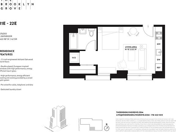 *STUDIO/1BATH AVAILABLE FOR SEPTEMBER MOVE-IN! NOTE: UNIT IS CURRENTLY TENANT OCCUPIED!* The Brooklyn Grove located at 10 Nevins Street is a beautiful collection of residences located in Brooklyn's most dynamic area and steps away from public transportation. Eastern exposure studio is anchored by wide plank oak flooring throughout and enjoys custom LED lighting, expansive windows and airy living spaces. The kitchen boasts custom rift oak cabinetry, concrete hued Caesarstone countertop, Taj Mahal stone backsplash, all highlighted by antique brass hardware and is outfitted with paneled high-end appliances. The bathroom is graced with Santa Marina stone tile walls, Waterworks fixtures, and an oak vanity with Fior di Bosco countertops. To ensure maximum comfort for residents, each room has individual climate control including the ability to seamlessly choose heat or air conditioning 365 days a year. The unit also features an in-unit washer/dryer. Amenities include: - 24-hour concierge - Lounge with gas fireplace, pool table and screening area - 40-foot indoor pool - Private dining room equipped with chef's kitchen - Fitness center with yoga studio - Imaginative children's playroom - Rooftop lounge with BBQ grills - Pet spa - Package storage - Bicycle storage Unlike other individually owned condominium units this apartment is professionally managed by Ankor Management. All Ankor tenants have enhanced services that include a tenant portal for online payments, maintenance issues, and a 24/7 contact line in the event of any other problems they encounter. Rest assured knowing that you don't have to chase anyone overseas for answers to issues that you have with your apartment. The Ankor Management team is here to help every step of the way from move in to move out, our team will make the process as seamless as possible! -$20 credit check/background report -Tenant pays electric, cooking gas and internet Condo Application Fees -$650 Processing fee (non-refundable) -$125 Screening fee per person 18+ (non-refundable) -$1,000 Move In/Out Deposit (Refundable)