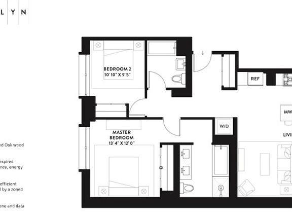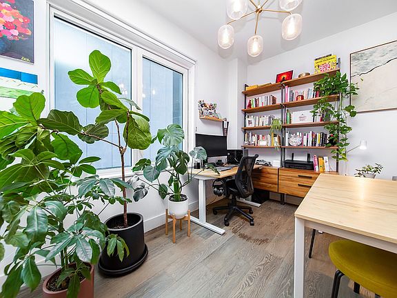Unit 12C is Large two bedroom with double exposure. Can be delivery unfinished or fully finished . This two bedroom, two bathroom residence is spread out over the entire width of the building with both eastern and western exposures. The spectacular great room with open kitchen includes a large island with wine refrigerator while the master suite has a separate shower enclosure and double sinks. With interiors designed by ODA New York, The Brooklyn Grove features a subtle mingling of organic materials and lush textures. Each room offers unexpected touches and welcome surprises including wide plank oak flooring throughout. In the kitchen, custom rift oak cabinetry strikes a distinct contrast against the concrete-hued Caesarstone countertop, Taj Mahal stone backsplash, and antique brass hardware. The elegance of the master bathroom is perfected with two types of marble and stone mingling to create a neutral palette that lets the world fall away. A composition of Santa Marina stone tile walls, Waterworks fixtures, and oak vanity with Fior di Bosco countertops compete the bath. The amenities at Brooklyn Grove were conceived with a natural aesthetic to feel warm and welcoming. Amenities include a 24-hour concierge, lounge with gas fireplace, pool table and screening area, 40-foot skylit indoor pool, private dining room, fitness center with studio for yoga, imaginative children's playroom, rooftop lounge with BBQ grills, pet spa, package storage, bicycle storage.