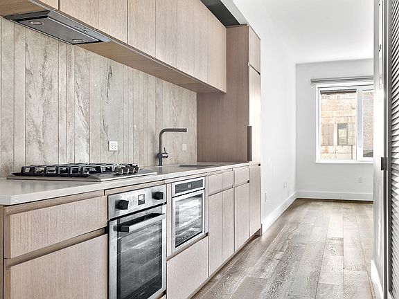 Welcome to 10 Nevins St Unit 5M, a studio residence with elegant features in one of Downtown Brooklyn's newest luxury condominiums. This beautiful home has a long layout which offers ample space for living and sleeping, a large custom-built walk-in closet and includes a Bosch washer/dryer. The kitchen is outfitted with custom rift oak cabinetry, concrete-hued Caesarstone countertop and a Taj Mahal stone backsplash, all highlighted by antique brass hardware. The premium appliances from Bosch refrigerator to the Bosch dishwasher are all paneled. The well-appointed bathroom is adorned with Santa Marina stone tile walls, Waterworks fixtures and an oak vanity with Fior di Bosco countertops. With high-end finishes, in-unit W/D and a comfortable layout, this studio is not to be missed. The Brooklyn Grove is a new luxury condo building with a 24-hour concierge/doorman in the heart of Downtown Brooklyn. The state-of-the-art wellness amenities include a 40-foot indoor swimming pool and an all-equipped fitness center, even featuring a yoga room. The building offers a modern residents' lounge, located in a soaring space with 22-foot ceilings, a fireplace, pool table, and a large screening area. The rooftop lounge features idyllic views, with lounging and dining areas, and BBQ grills. There is a private dining room, a playroom, pet spa, package room with cold storage and bike storage. For entertainment, there is a diverse selection of establishments to choose from including Cafe Paulette, Tacombi, French Louie, Kimoto Rooftop, Rhodora Wine Bar, Rucola, and Mia's Brooklyn Bakery to name a few. Fort Green Park is only a few blocks away and Brooklyn Grove is located near the Nevins St (2,3,4,5), Dekalb (B,D,N,Q,R) and Hoyt- Schermerhorn (A,C,G) subway stations, a plethora of public transportation options is available for almost any commute. Condo Application & Building Fees: $650 - Processing fee (non-refundable) $125 - Screening fee per occupant 18+ (non-refundable) $500 - Expedite application fee (non-refundable, if applicable) $1,000 - Move In/Out Deposit (refundable)