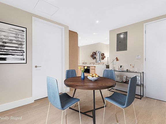 But the amenities don't stop within the walls of your home. As a resident, you'll have access to an array of luxe amenities such as a pool, gym, residents' lounge, private dining room, pet spa, and a children's playroom. Elevate your evenings with time spent on the fully furnished roof decks, where you'll enjoy killer views of both Brooklyn and Manhattan. The building is fully staffed with a 24 hour door person, concierge and live-in super.