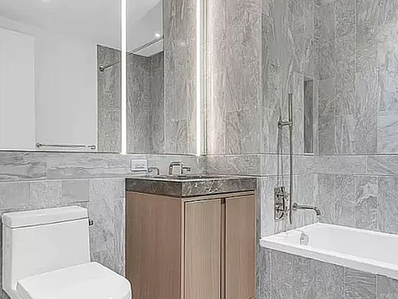 STUNNING STUDIO AT THE BROOKLYN GROVE! With interiors designed by ODA New York, The Brooklyn Grove features a subtle mingling of organic materials and lush textures. This studio home offers unexpected touches and welcome surprises including wide plank oak flooring throughout. In the kitchen, custom rift oak cabinetry strikes a distinct contrast against the concrete-hued Caesarstone countertop, Taj Mahal stone backsplash, and antique brass hardware. The elegance of the bathroom is perfected with two types of marble and stone mingling to create a neutral palette that lets the world fall away. A composition of Santa Marina stone tile walls, Waterworks fixtures, and oak vanity with Fior di Bosco countertops compete the bath. The Brooklyn Grove's fade makes a statement along Nevins Street, featuring subtly glazed brick and distinctive windows that draw the eye upwards. Reminiscent of an ancient Japanese temple, the inviting attended lobby is rich in thoughtful materiality, with sightlines to Grove Place and beyond. Cutting-edge culture, boutique shopping, and the best dining are all located right outside its doors. The Brooklyn Grove's multi-textured design story continues with the residents' lounge, located in a soaring space with 22-foot ceilings, a gas fireplace, a pool table and screening area. The rooftop lounge features idyllic views of Fort Greene Park, with lounging and dining areas, and BBQ grill for al fresco gathering. Wellness amenities include a 40-foot indoor swimming pool and fitness center with yoga room. Conveniently equipped with a kitchenette, the private dining room is a place to bring friends and family together for celebratory dinners and drinks. Parking, a children's playroom, and package, private, and bike storage round out the extensive amenities offered. On-site parking is available. Live and work from home in this beautiful space. Pictures of a similar unit in the building. Come Take A Look! Sorry! No pets Housing Choice Vouchers welcome at all eligible apartments.
