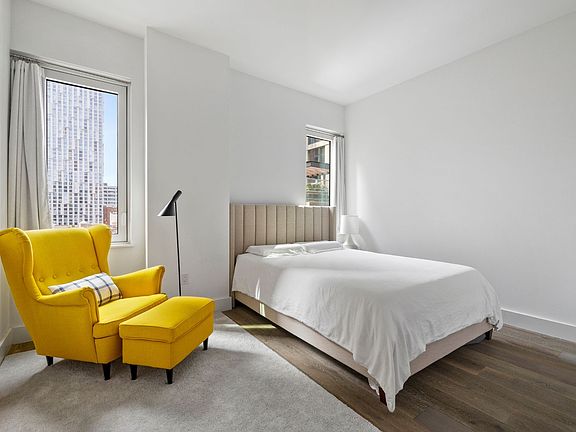 No pets except as reasonable accommodations for disabilities. This beautifully appointed one-bedroom home hovers gracefully above downtown Brooklyn from its perch on the 15th floor of The Brooklyn Grove, a brand-new modern condominium on Nevins Street. Step inside and you are welcomed by wide-plank oak wood flooring throughout and warm light from the deep and dramatically framed oversized windows. The gourmet kitchen showcases rift oak cabinetry and Caesarstone countertops, highlighted with antique brass hardware. The neutral-toned bathroom embraces you with a marble and oak vanity and Waterworks fixtures. There is a full closet and your very own washer and dryer within the unit. The Grove, as it's fondly referred to, is a 27-story condominium located at the crossroads of Boerum Hill, Fort Greene, and Brooklyn Heights. Amenities include a 24-hour concierge, lounge with gas fireplace, pool table, and screening area, a 40-foot skylit indoor pool, private dining room, fitness center with studio for yoga, imaginative children's playroom, rooftop lounge with BBQ grills, pet spa, and package and bicycle storage. Downtown Brooklyn is a central hub of all things New York City. From local eateries to world-famous chefs, from well-known shops to born-and-bred Brooklyn exclusives, and from cultural icons to rare cultural experiences, you are connected to it all. The neighborhood includes Fort Greene Park and multiple transportation lines including 2, 3, 4, 5, B, Q, R, all at Atlantic Terminal.