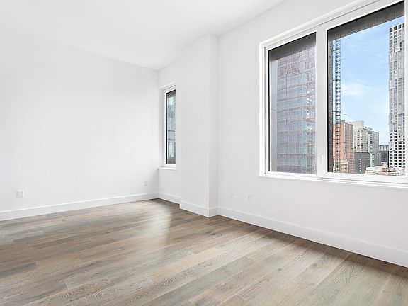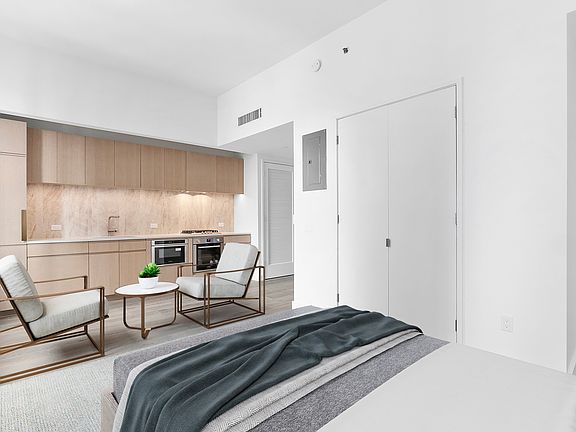 Welcome to a bright Downtown Brooklyn studio with open views, state-of-the-art apartment features, and the finest building amenities. This beautiful apartment has a great layout and is located in a brand new building. The high ceilings and wide plank oak flooring gives this residence a uniquely elegant and modern look. The high-end kitchen features custom rift oak cabinetry, concrete-hued Caesarstone countertop and a Taj Mahal stone backsplash, all highlighted by antique brass hardware. The premium appliances from the Bosch dishwasher to the Bosch refrigerator are all paneled. The luxurious bathroom is adorned with Santa Marina stone tile walls, Waterworks fixtures and an oak vanity with Fior di Bosco countertops. The well-thought-through floor plan of the residence includes two large closets and Bosch washer and dryer. Brooklyn Grove is a 24 hour doorman building with the finest features and living standards. The state-of-the-art wellness amenities include a 40-foot indoor swimming pool and an all-equipped fitness center, even featuring a yoga room. The building offers a modern residents' lounge, located in a soaring space with 22-foot ceilings, a fireplace, pool table, and a large screening area. The rooftop lounge features idyllic views, with lounging and dining areas, and BBQ grills. There is a private dining room, a playroom, pet spa, package room with cold storage and bike storage. Brooklyn Grove's location in upcoming Downtown Brooklyn gives access to great restaurants like Forno Rosso Pizzeria, Jun Shokudo, Yaso Tangbao, Juniors With the A, C, B, D, N, Q, R, W, 2, 3, 4, 5 trains in close proximity, Downtown Manhattan is only 15 minutes away. Pets allowed on a case-by-case basis. Application Fees: o $650 Processing fee (non-refundable) o $125 Screening fee per person 18+ (non-refundable) o $1,000 Move In/Out Deposit (refundable)