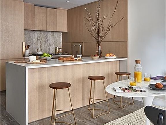 A new kind of building has taken root in Downtown Brooklyn. The Brooklyn Grove’s facade makes a statement along Nevins Street, featuring subtly glaze brick and distinctive windows that draw the eye upwards. Reminiscent of an ancient Japanese temple, the inviting attended lobby is rich in thoughtful materiality, with sightlines to Grove Place and beyond. Cutting-edge culture, boutique shopping and the best dining are all located right outside its doors. The Brooklyn Grove’s multi-textured design story continues with the residents’ lounge, located in a soaring space with 22-foot ceilings, a fireplace, pool table and screening area. The rooftop lounge features idyllic views, with lounging and dining areas, and BBQ grills for al fresco gatherings. Wellness amenities include a 40-foot indoor swimming pool and fitness center with yoga room. The private dining room is a place to bring friends and family together for celebratory dinners and drinks. Parking, a children’s playroom, pet spa, package room with cold storage, private storage, and bike storage round out the extensive amenities offering.