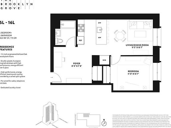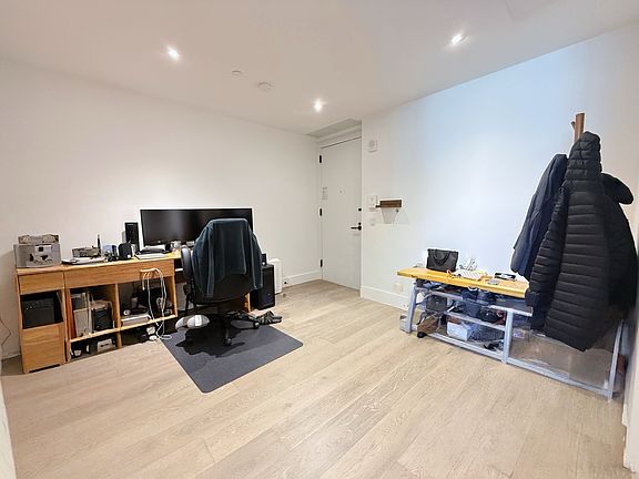 Fees associated with this unit: $125 screening fee per person - due at application. This super large one-bedroom unit with a Home Office is located on the 16th floor in a brand-new modern condominium on Nevins Street. Extra high ceilings and extra large windows! Step inside and you are welcomed by wide-plank oak wood flooring throughout and warm light from the deep and dramatically framed oversized windows. The gourmet kitchen showcases rift oak cabinetry and Caesarstone countertops, highlighted with antique brass hardware. Take advantage of the extra space at the entrance, which can be transformed into a dining nook, home office, or just imagine the possibilities. The neutral-toned bathroom embraces you with marble and an oak vanity and Waterworks fixtures. There are two full closets and your very own washer and dryer within the unit. The Brooklyn Grove, as it's fondly referred to, is a 27-story condominium located at the crossroads of Boerum Hill, Fort Greene, and Brooklyn Heights. Amenities include a 24-hour concierge, lounge with gas fireplace, pool table and screening area, a 40-foot skylit indoor pool, private dining room, fitness center with a studio for yoga, imaginative children's playroom, rooftop lounge with BBQ grills, pet spa, and package and bicycle storage. Downtown Brooklyn is a central hub for all things New York City. From local eateries to world-famous chefs, from well-known shops to born-and-bred Brooklyn exclusives, and from cultural icons to rare cultural experiences, you are connected to it all. Near Fort Greene Park and multiple transportation lines, including 2, 3, 4, 5, B, Q, R, and a few blocks from Atlantic Terminal.