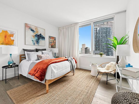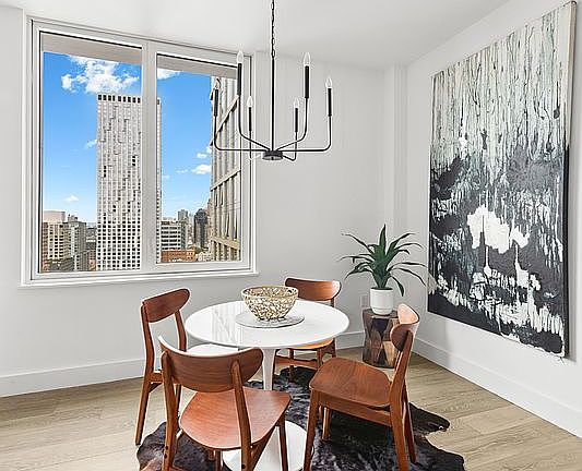 Perched high above Brooklyn, this two-bedroom, two-bath penthouse combines elevated design with sweeping city views. Every detail has been carefully considered, from the sleek finishes to the abundance of natural light streaming through oversized windows.