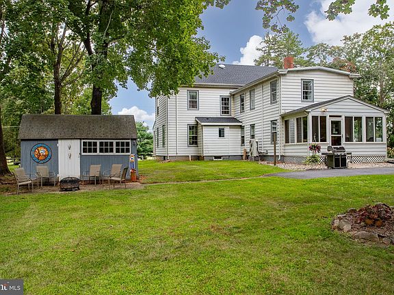 Welcome to this charming 4-bedroom, 2-bathroom Farmhouse nestled in the highly sought-after Chesterfield, NJ. Surrounded by picturesque farms, elegant horses, and breathtaking natural beauty, this property offers a tranquil escape from the hustle and bustle of everyday life. This Center Hall Colonial offers the character of a circa 1864 home with the modern conveniences for today. Key improvements within the last year include a new septic system, a roof replacement and a new electrical panel. With these major systems in top-notch condition, you can move in and start making memories immediately. As you approach the property, you'll be captivated by the vast 7+ acre parcel of land, which boasts the perfect blend of open space and scenic beauty. The inviting front porch beckons you to sit and savor your morning coffee or your evening glass of wine while soaking in the serene surroundings. Upon entering the house through the foyer, to the right of the front entrance, there's a parlor room perfect for use as a home office, library, or cozy retreat and to the left you'll find a spacious family room, seamlessly connecting to the formal dining room a space perfect for entertaining family and friends. Pumpkin pine floors cover this space. Heading towards the rear of the home, you'll discover the well-appointed eat-in kitchen. From the kitchen, step into the delightful three-season room, where you can enjoy the changing seasons and beautiful views of the property. Upstairs, you'll find four generously sized bedrooms, all offering ample closet space and a walk-up attic for added storage. Outside, the property boasts a three-car pole barn garage with electricity, a shed and a barn. Adding to the appeal, the neighboring property to the right is preserved farmland, ensuring privacy and unspoiled natural beauty. Don't miss out on the opportunity to make this unique farmhouse your forever home, with its desirable location, thoughtful updates, and expansive land. Schedule a viewing today and start living the serene country life you've always dreamed of!
