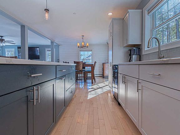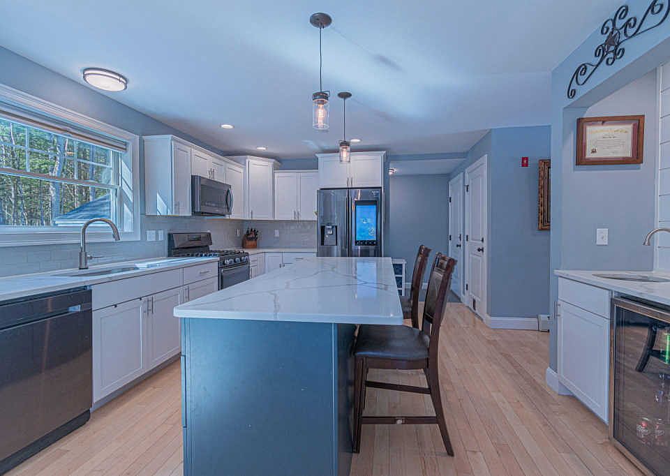 Nearly new, just built in 2018, this home is beautiful and move-in ready. Excellent, efficient and open first floor allows for fantastic flow. Enjoy the cozy environment the built-in propane fireplace, the sunshine pouring into the windows as well as the deer sightings out the sliding glass doors into the protected wooded wonderland affords. This kitchen is truly designed to please with plenty of cabinets, gas cook stove, elegant & gleaming Quartz countertops, smart fridge & wet bar w/ wine fridge. Three generous rooms on the second floor all with large closets, an additional bonus space/playroom/office, laundry room and a fabulous primary suite with large walk in closet and its own bathroom that offers a very upscale experience with a large walk-in gorgeous marble tile shower, and double sink vanity with cararra marble counters! Under it all is a spacious, dry, full, unfinished basement that could make a great in-home exercise area w/ high ceilings. Mudroom off the garage entrance is essential for our fun filled Maine living. Especially with the boundless recreational opportunities this property offers from spacious yard, neighborhood common spaces and an awesome neighborhood trail that leads to the Freeport Conservation Trust's Calderwood Preserve trail system to the ocean, Maquoit Bay! Bring a couple of rocking chairs for the covered front porch or relax on the back deck, this one won't last long, it's ready for you to move right in and get settled.