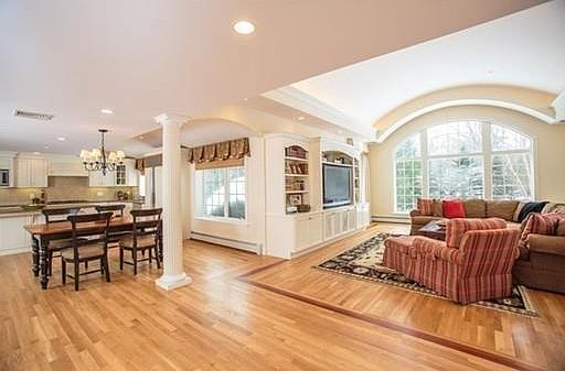 In this updated vibrant Colonial, the gourmet kitchen is truly the heart of the home with handcrafted cabinetry in a soft neutral white with high-end appliances. An inviting fireplace graces the eat-in breakfast room and opens to the oversized family room with a beautiful barrel ceiling, custom built-ins and walls of windows overlooking the picturesque and level grounds. Classic hardwood floors, formal living room with fireplace & pocket doors lead to a lovely formal dining room. Fabulous light-filled office with cathedral ceiling can also be a used as a private den. The master suite features expansive windows, cathedral ceiling, two walk-in closets & a sumptuous marble bath. Four spacious bedrooms make up the second floor. The finished lower level includes a generous sized playroom and separate exercise room. Coveted location in the Nobscot Hill neighborhood, excellent schools and an easy commute to Boston complete this wonderful home.